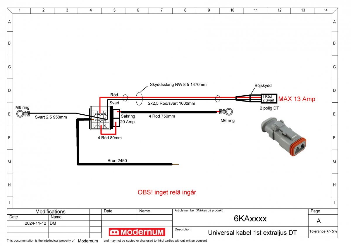 Modernum Extraljuskablage ramp /extraljus DT-kontakt 1x2-polig OBS utan relä