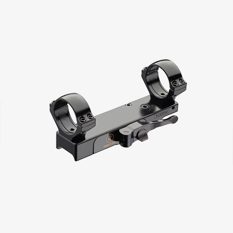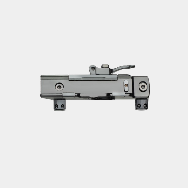 Detta är Contessas patenterade snabbfäste (QD) för Picatinny-skenor, utrustat med en låsarm på vänster sida. Systemet är designat för jägare och skyttar som kräver absolut precision och pålitlighet. Contessas unika låsmekanism garanterar att siktet återgår till nollpunkt (Return to Zero) vid varje montering.
