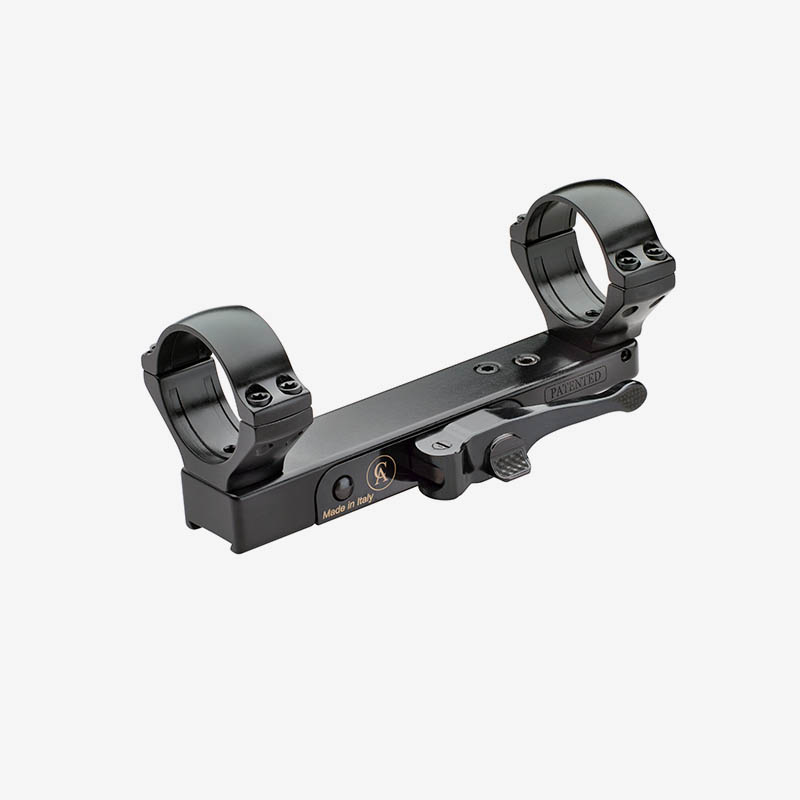 Detta är ett patenterat snabbfäste (QD) från Contessa, särskilt framtaget för halvautomatiska hagelgevär och repetervapen. Fästet är utrustat med en låsarm på höger sida för att minimera risken att fastna i utrustning eller hölster. Contessas unika system garanterar att siktet bibehåller sin nollpunkt (Return to Zero) vid varje montering.