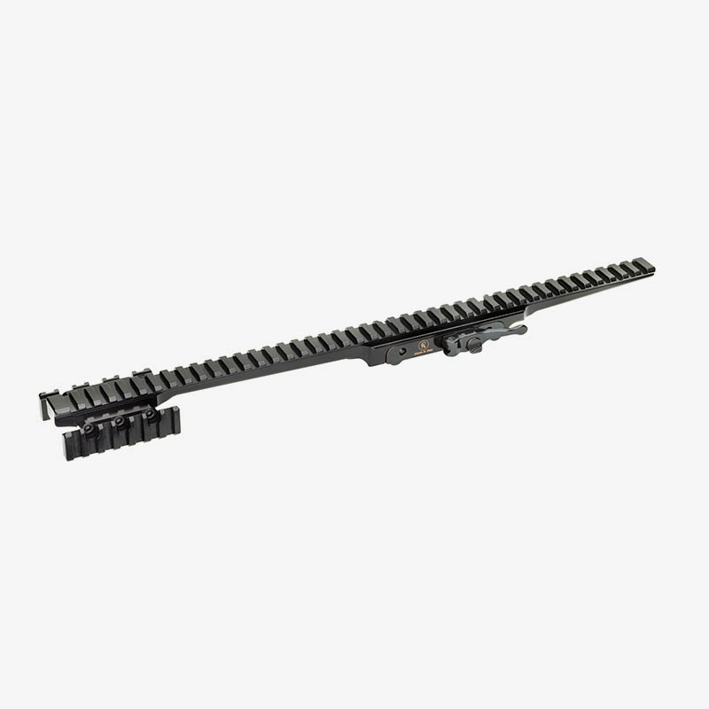 - Extra lång (XXL) solid Picatinny-skena för flexibel montering av optik.