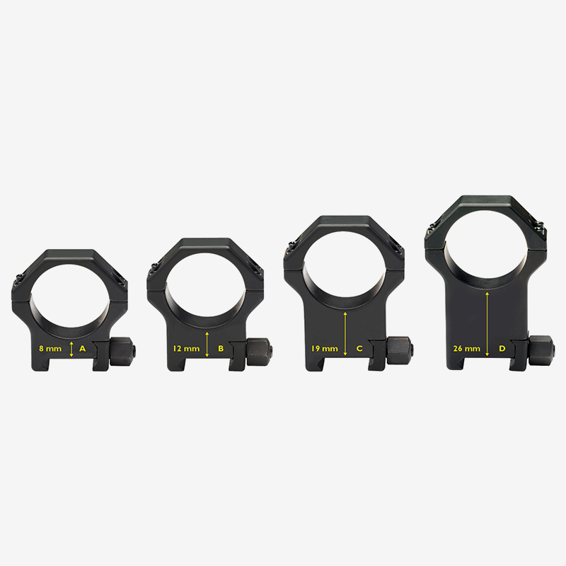 Ett par ringar i härdat stål för Picatinny- eller Weaver-skenor. Utvecklade för att säkerställa hållbarhet, stabilitet och garanterad återgång till nollpunkt.