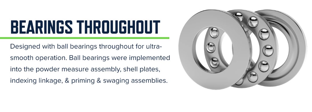 Grunden är en massiv stålkonstruktion med flera kullager och en unik, kugghjulsdriven hylshållarplatta. Denna extremt jämna och exakta rotation nästan eliminerar problem med krutspill och kulor som välter, vilket maximerar din effektivitet och minimerar avbrott.