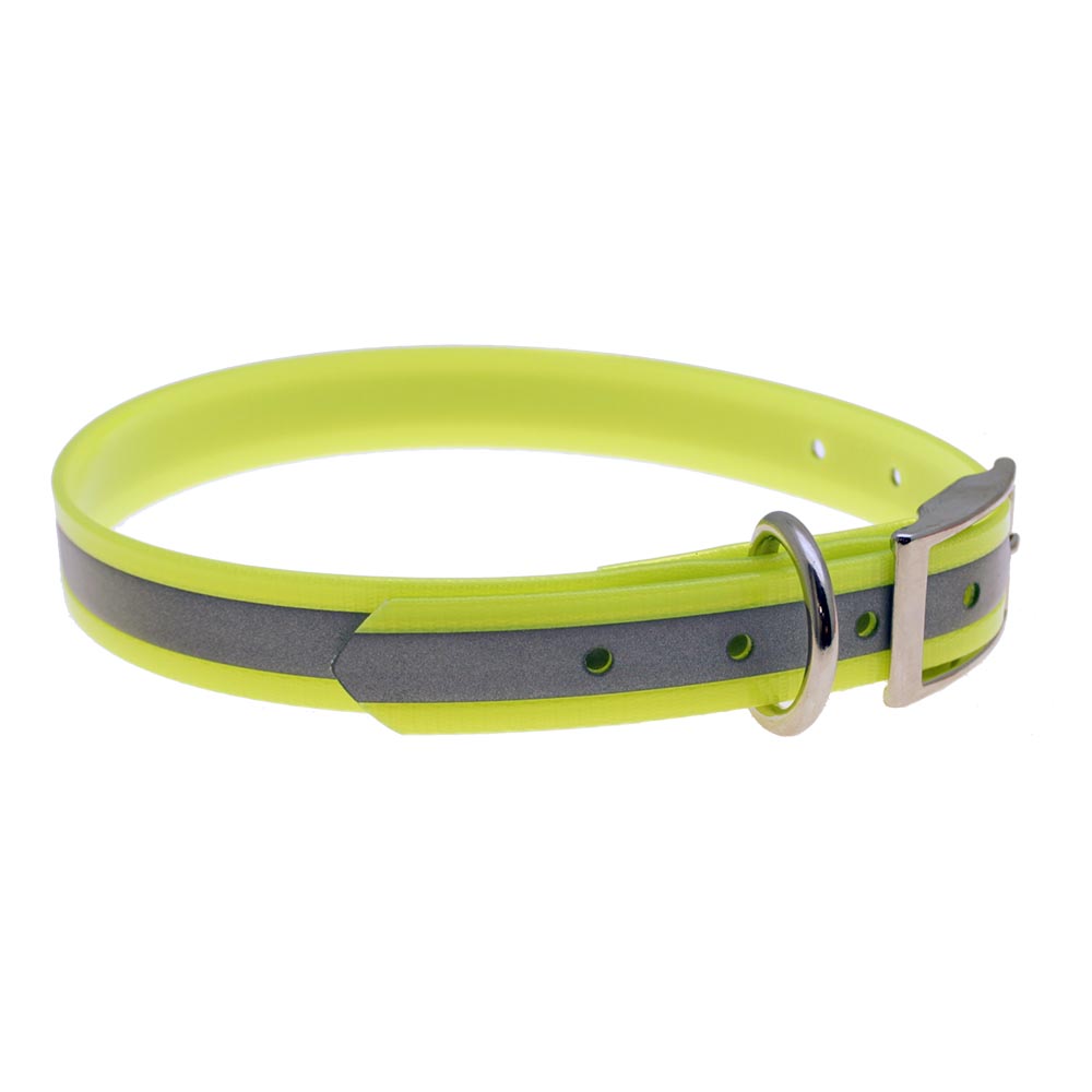 Mycket hållbart utbyteshalsband till Garmin DC40, DC50 och T5. Reflex för extra säkerhet, det blir också enklare att hitta halsbandet om det lossnar under jakt. Finns i fem olika färger; grön, gul, orange, rosa och blå. Förutom ökad synbarhet är färgerna en stor hjälp när det gäller att veta vilket ID halsbanden har.
