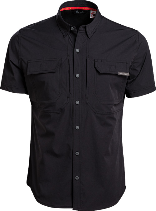 Skjorta för alla tillfällen med 4-vägs stretch. Två bröstfickor med magnetisk stängning (om du har en pacemaker, kontakta din läkare innan du använder produkten) och även två dolda bröstfickor med dragkedja. Putsduk finns dold i främre nedre delen av skjortan för att du i alla tillfällen ska kunna göra ren din optik.