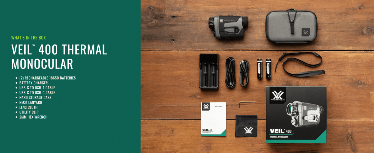 Veil 400 gör att du kan behärska mörkret, jaga längre och röra dig med självförtroende från skymning till gryning. Oavsett vad du jagar eller om du navigerar i okänd terräng efter mörkrets inbrott, levererar den skarp värmebildsteknik med en perfekt balans mellan förstoring och synfält. Den bekanta, kompakta designen och de enkla kontrollerna är lätta att använda utan att du behöver titta på dem. Den är byggd för att hålla och backas upp av Vortex berömda livstidsgaranti, vilket sätter en ny standard för vad jägare kan förvänta sig av termisk optik.
