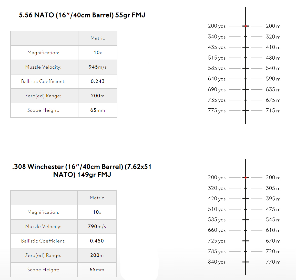 | Träfflägesjustering 100 m: | 1/10 MRAD (10 mm) |